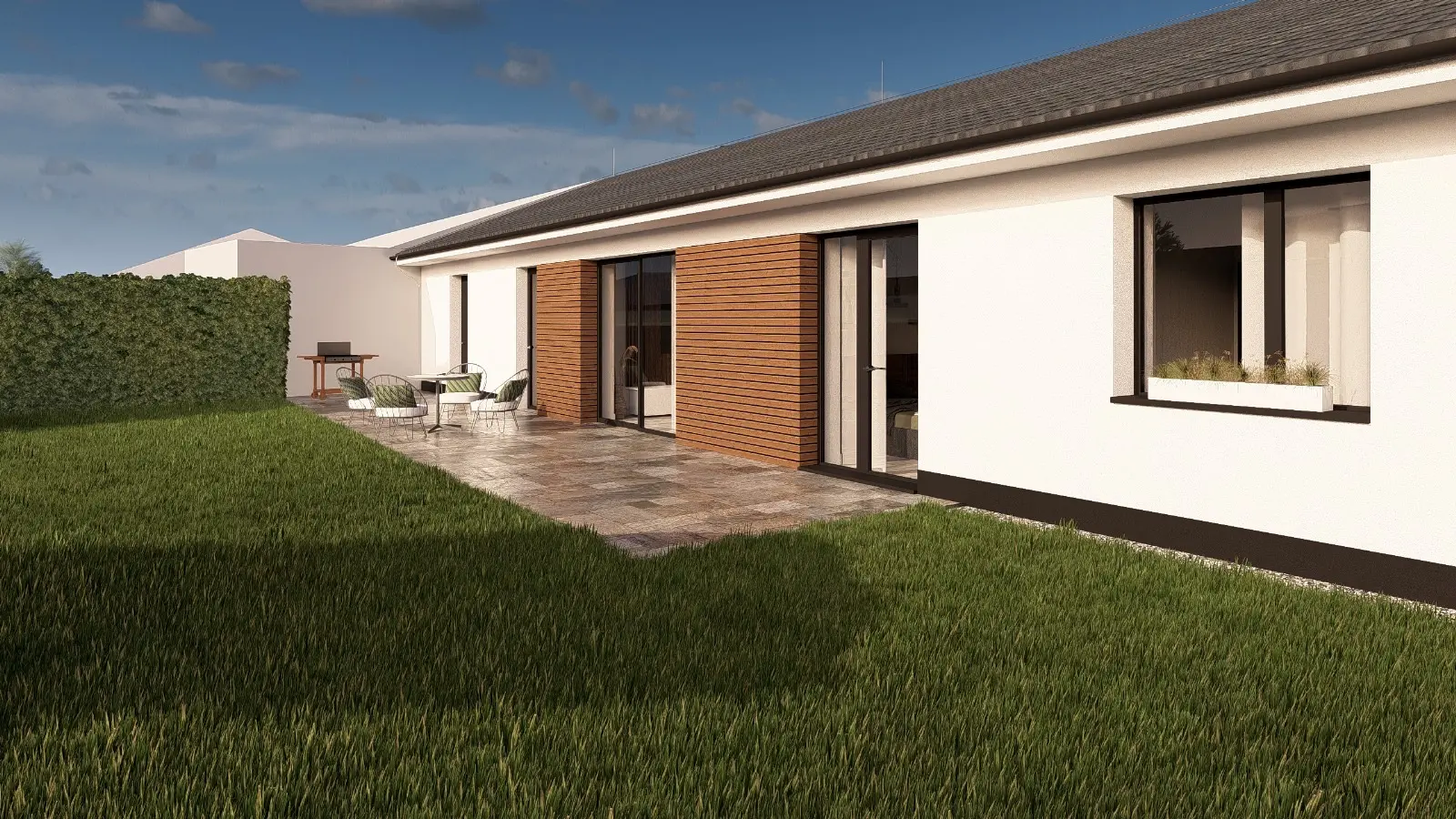 Nabízíme novostavbu řadového rodinného domu 5+kk s garáží a zahradou v obci Břežany, obklopené vinicemi a tradičními vinnými sklepy.