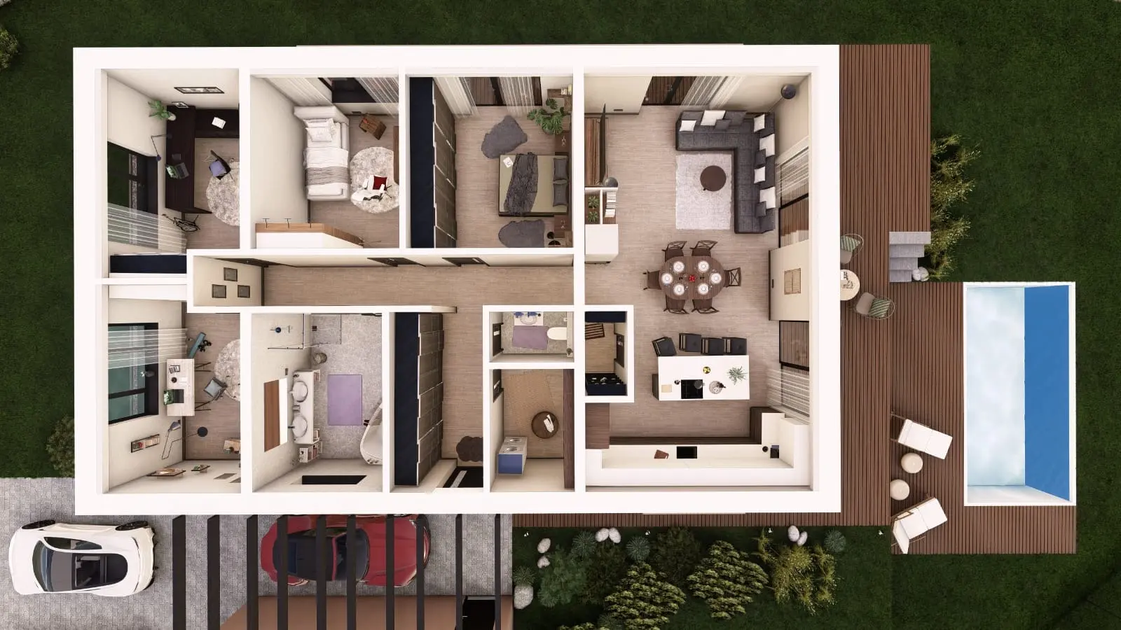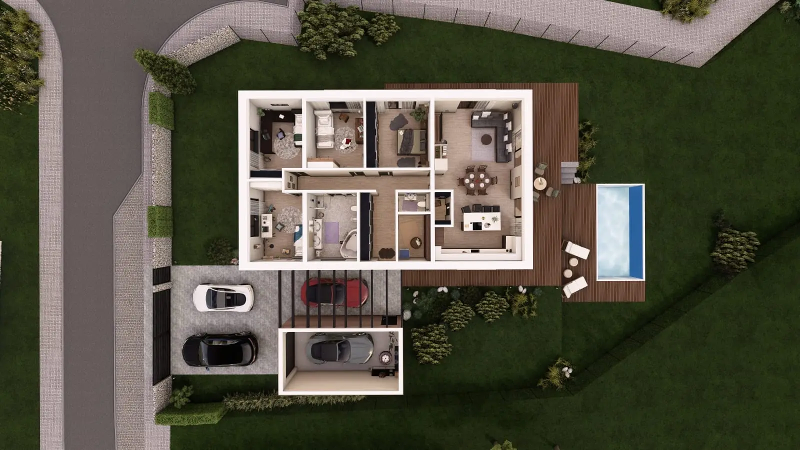 Dům nabízí výjimečný pocit soukromí – je koncovým domem v nové rezidenční části obce s výhledem na vinice a klidným okolím. Luxusní, promyšlený a úsporný domov pro ty, kteří chtějí spojit moderní komfort s kouzlem jižní Moravy. Bazén, terasa a vybavení domu jsou pouze ilustrativní součástí vizualizace a nejsou zahrnuty v ceně. Je ale možné je v budoucnu realizovat, pokud si to nový majitel přeje.